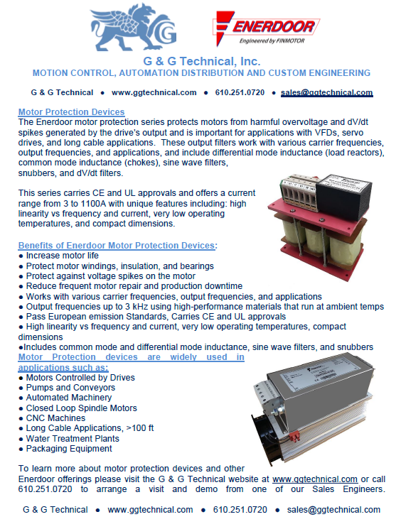 Since 2016 Enerdoor has partnered with G&G Technical as an authorized distributor to bring the most advanced and reliable motor protection devices to the Mid-Atlantic region. G&G Technical is the perfect complement for your design and engineering team with their decades of experience in the motor protection field.